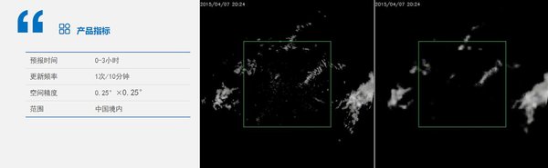 该产品采用本公司自主研发的雷达专用短时临近外推模式,结合国家气象观测站网雷达资料开发。产品实现了对雷达回波的精准外推预测,相比传统雷达回波外推产品,其精准度有十分可观的提升。