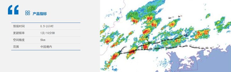 采用全卷积神经网络做格点化雷电概率预报,精度5Km,10分钟外推一次2H预报。结合雷达、大气电场、雷电数据提供未来半小时至两小时的雷达预警,通过雷达回波中提取雷暴云团移到矢量对当前的预警区域进行外推,来获得新的预计区域。